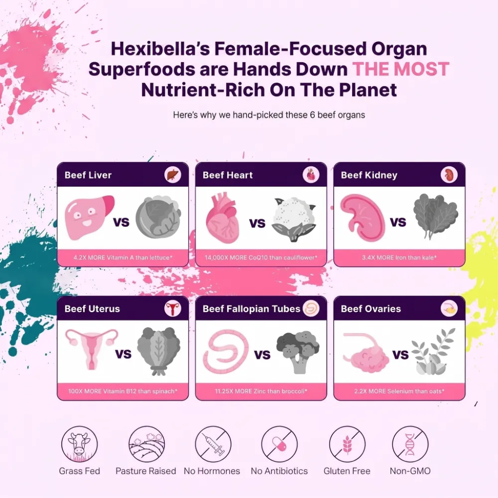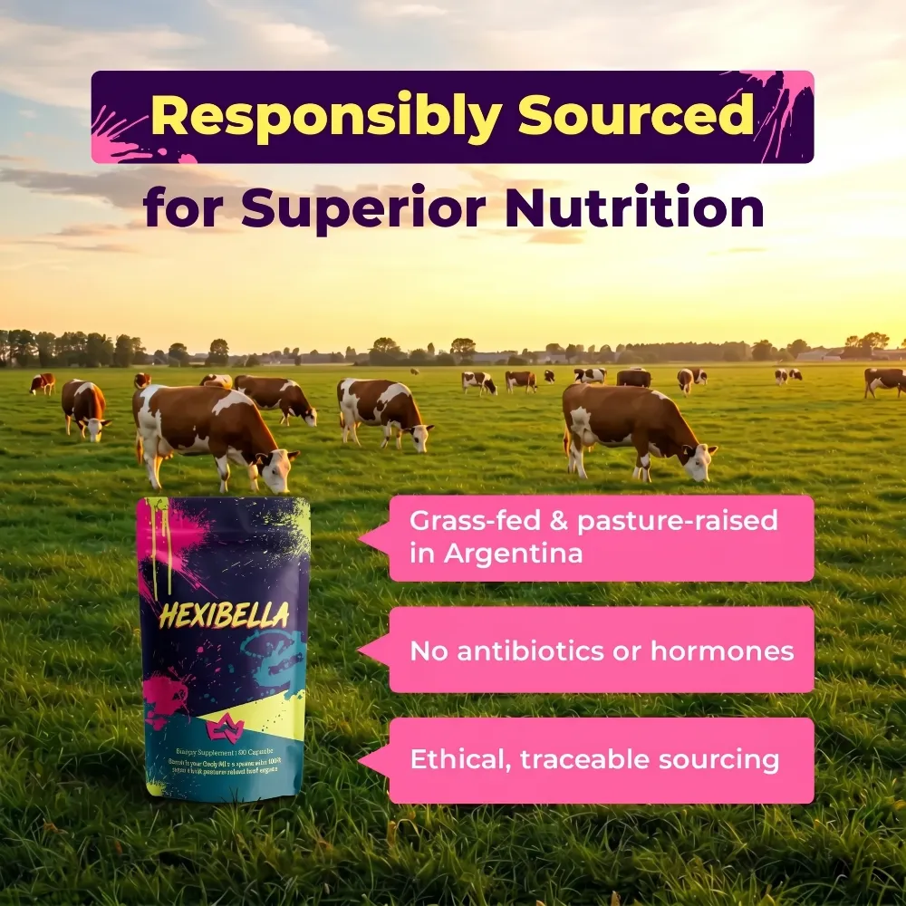 Für die Herstellung unserer Rinderorgane verwenden wir Kühe aus Weidehaltung in Argentinien, die dann gefriergetrocknet und zu dem Pulver verarbeitet werden, das wir in unsere Kapseln füllen. Perfekt für Frauen über 30, um ihre Energie, Stimmung, Motivation und ihr hormonelles Gleichgewicht zu verbessern.