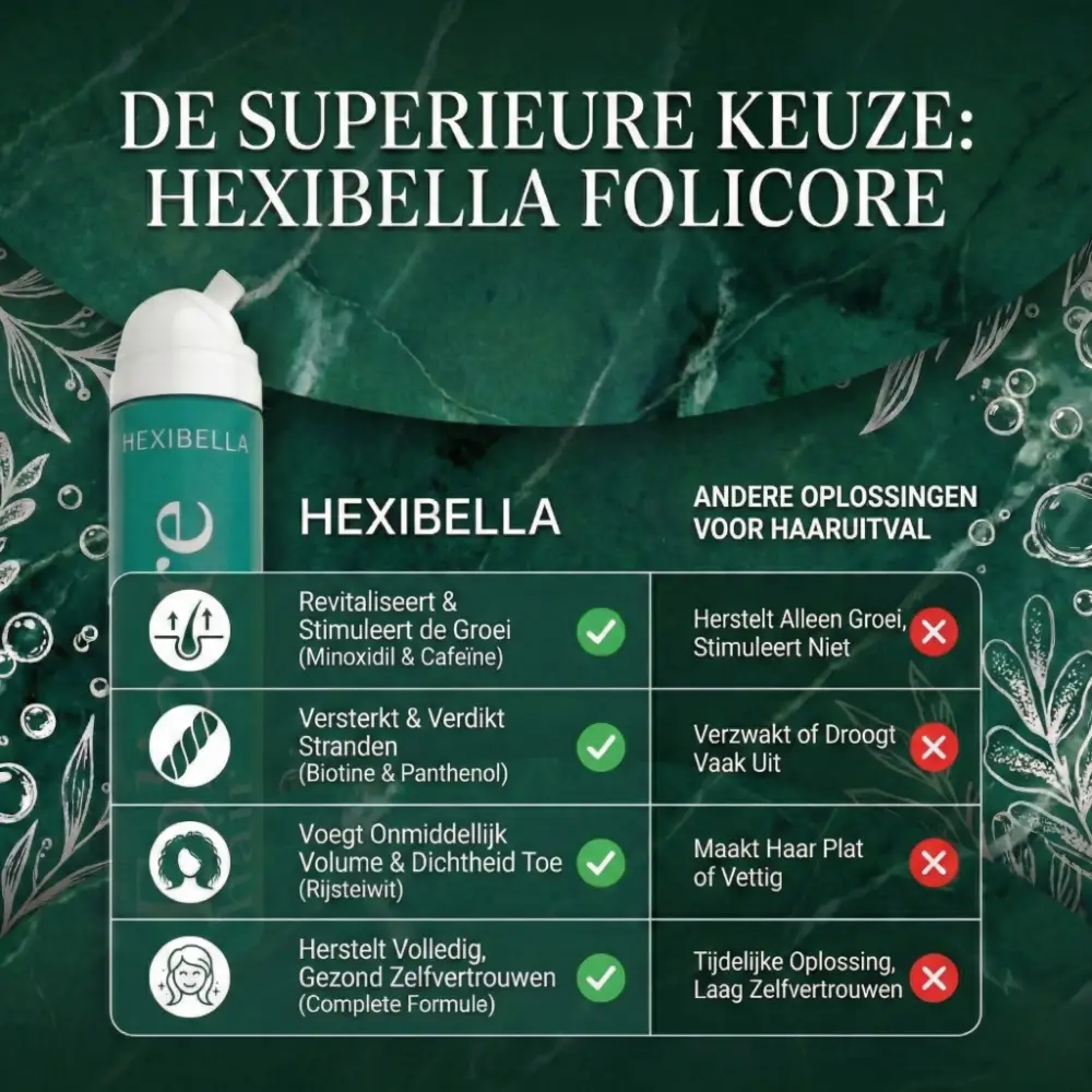 Haaruitval wordt veroorzaakt door het hormoon DHT, dat zich bindt aan de haarfollikel en deze na verloop van tijd verzwakt. Onze formule combineert de sterkste natuurlijke DHT-blokker (cafeïne), het door artsen aanbevolen #1 ingrediënt voor haargroei (minoxidil), twee wetenschappelijk bewezen ingrediënten om de eiwitsynthese te stimuleren en je haar dichtheid, dikte en volume te geven (biotine en rijsteiwit) en de beste vochtinbrenger om haarbreuk te voorkomen en de hoofdhuid gezond te houden (panthenol). Onze uitgebreide formule werkt voor hergroei, dichtheid en volume om haarverlies om te keren, ongeacht je leeftijd of hoeveel haar je hebt verloren.
